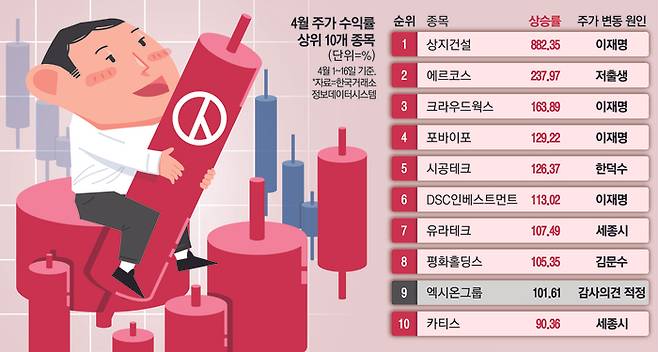 “보름만에 882%나 올랐어요”...불기둥 솟은 정치테마주, 수익률 톱10 장악