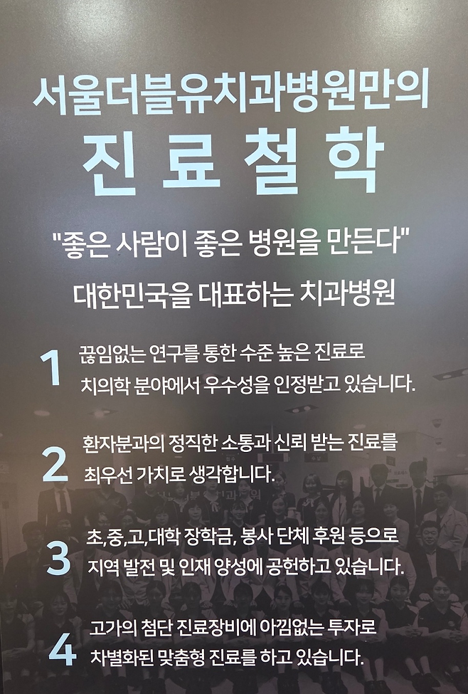 초기에는 원장 1명, 직원 3명의 소규모 병원이었지만, 현재는 원장 9명, 직원 60여 명의 조직으로 성장했다. 구강외과 전문의인 손효정 병원장이 진료를 맡으며 병원을 함께 이끌고 있다.김 이사장은 “병원의 성장과정 자체가 은혜”라며 “일반적으로 개원 치과의 안정화 기간은 3년 남짓. 그 이상 꾸준히 성장하기란 쉽지 않다”고 설명했다.
