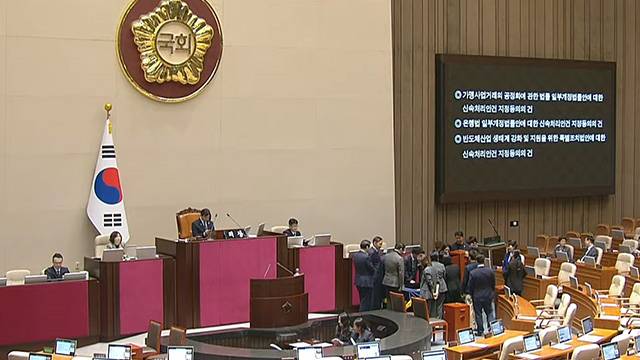 반도체특별법과 은행법, 가맹사업법 등 3개 법안이 국회 본회의에서 더불어민주당 주도로 신속처리안건(패스트트랙)으로 지정됐습니다.