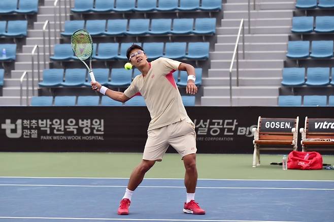 [부산=김홍주 기자] 올해 들어 처음으로 선 국내 무대에서 정현은 자신의 이름 값을 톡톡히 해냈다. 정현은 2025 부산오픈 국제챌린저대회에서 국내 선수로는 단복식 합쳐서 유일하게 살아남은 선수가 되었다.