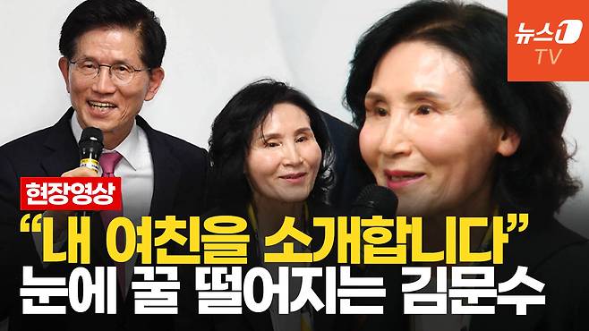 김 후보자는 17일 오후 서울 여의도 선거사무소에서 열린 개소식에서 아내 설 씨를 무대 앞으로 부르며 "제가 꼭 소개해야 할 사람이 있다. 가장 사랑하는 저의 여자친구"라고 말했다.