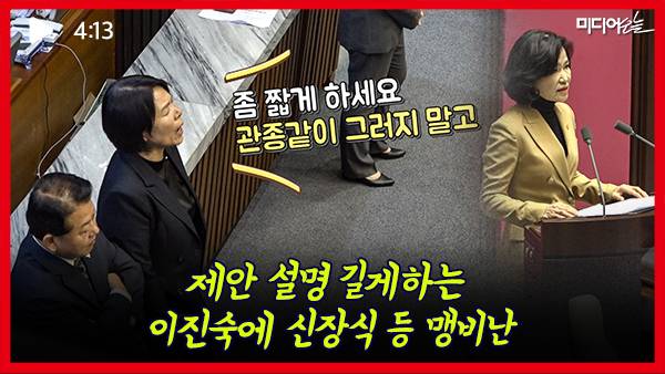 이진숙 위원장이 아랑곳하지 않고 제안 설명을 길게 이어가자 민주당 의원들은 일제히 "그만해!"를 외치기도 했다.