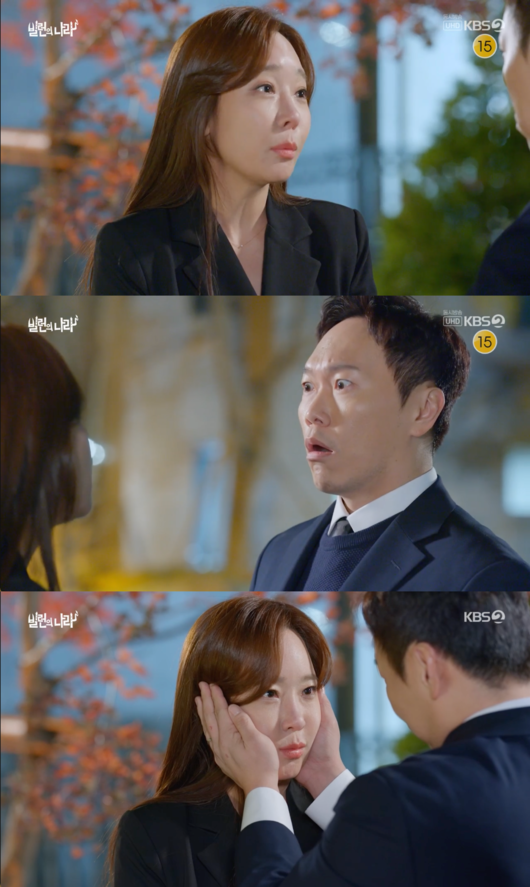 17일 오후 방송된 KBS 2TV 수목시트콤 '빌런의 나라'에서는 송진우(송진우 분)가 삐친 오유진(소유진 분)을 달래며 뽀뽀를 했다.