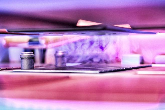 현대모비스는 배터리셀 발화 시 소화 약제를 자동 분사해 화재가 즉시 진압되는 형태를 고안했다.
