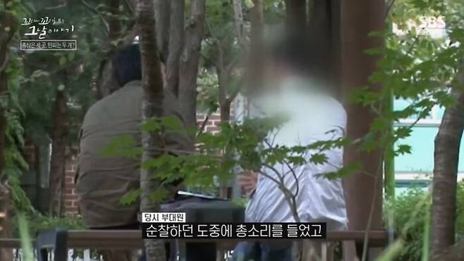 "한참 간격을 두고 났어요. 총소리가... '핑' 소리가 나고, 나중에 총소리가 또 났어요. (두 발 정도로 기억을 하는 거예요?) 네."