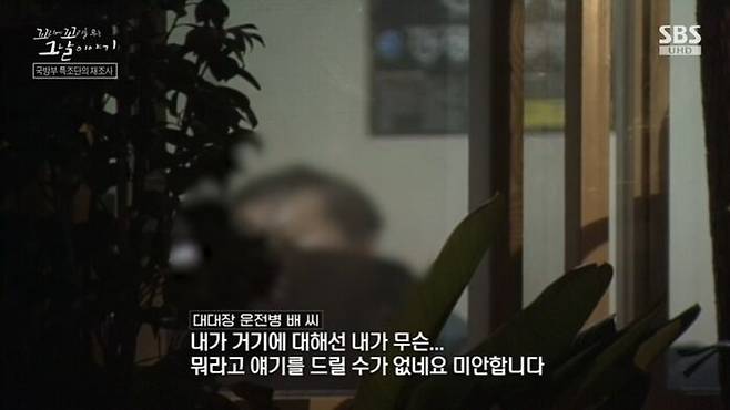 "대대장 운전병 배 모씨가 의문사위원회 조사과정에서 사전 각본에 짜여진 유도질문에 대답한 것이 물의를 일으키게 되어 정말 죄송스럽다고 진술하였습니다."