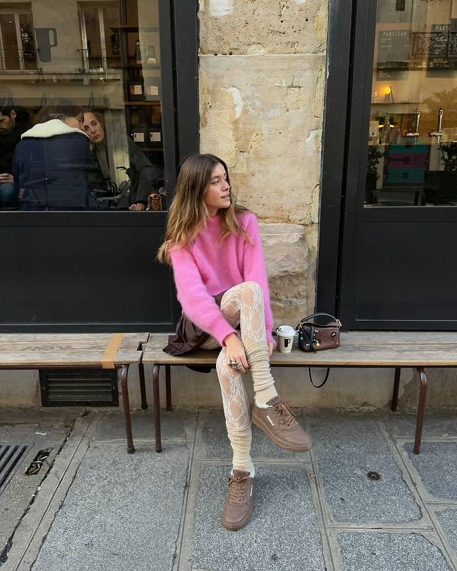 인플루언서 오눅 역시 마리 앙투아네트가 즐겨 신었을 법한 레이스 하양 스타킹을 신었습니다. 화려했던 그 시절과 완전히 다른 점은 기동성 좋은 스니커즈를 매치했다는 것이죠. 자신만의 개성이 담긴 룩을 찾아보고 싶다면, 하얀 스타킹이 재미있는 아이디어를 제공할 거예요.