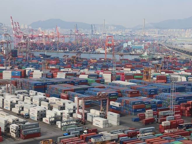 | ▲ 부산항에 가득 쌓여 있는 컨테이너 |