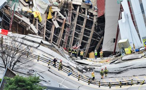 [붕괴 사고가 발생한 경기도 광명시 신안산선 지하터널 공사 현장에서 12일 구조대원들이 실종자를 수색하고 있다. 지난 11일 경기도 광명시 양지사거리 부근 신안산선 복선전철 제5-2공구 지하터널 공사 현장과 상부 도로가 함께 붕괴하는 사고가 났다. (사진=연합뉴스)]