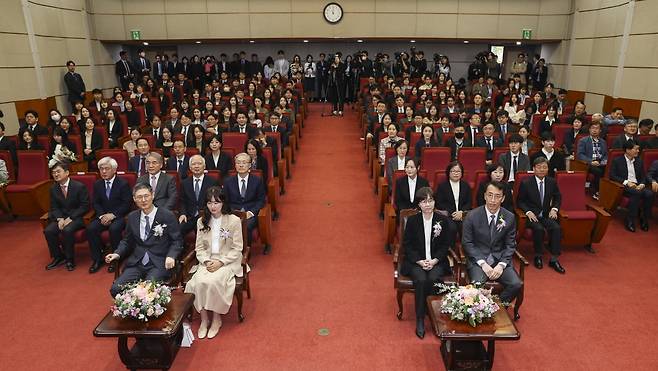 18일 오전 서울 종로구 헌법재판소에서 문형배 헌법재판소장 권한대행과 이미선 헌법재판관의 퇴임식이 열렸다.