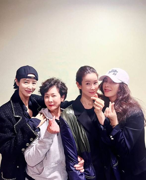 사진 속 송윤아와 김혜수는 연극 '분홍립스틱'에 출연 중인 박정수, 이태란과 인증샷을 남기고 있는 모습. 네 사람은 카메라를 향해 활짝 웃어보이며 여배우들의 우정을 자랑해 훈훈함을 자아낸다.