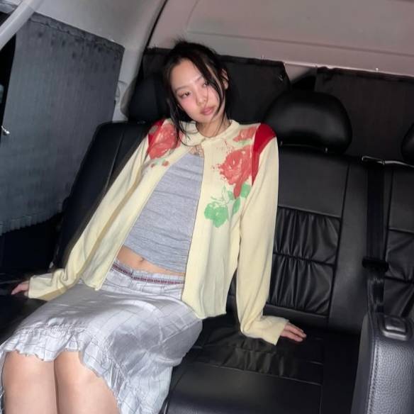 패션 하면 제니, 제니 하면 패션. 제니는 회색 톱과 실버 스커트로 잔잔하고 단정한 무드를 연출한 뒤, 빨간색 꽃무늬 프린팅이 돋보이는 크림색 가디건을 걸쳐 룩에 생기를 더했다. 차분한 컬러 조합 속 선명한 레드 플라워가 포인트 되어 산뜻한 봄 분위기를 한층 끌어올린 것이 특징. 과하지 않으면서도 존재감 있는 스타일이 필요할 땐 제니처럼 크기가 큰 꽃무늬 아이템을 더해보면 좋겠다.