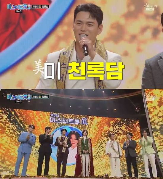 장르를 바꿔 트로트에 도전한 그는 '트롯 신생아'라는 별명을 얻게 됐고, 최종 3위인 미(美)에 등극했다. 그는 "제가 24년 동안 노래를 했는데 오늘 처음으로 상을 탄다. 너무 감사하고 기쁘다. 생각하지 못했다. 천록담이라는 이름까지 잘 데려와준 이정 씨한테 정말 감사드린다"라고 소감을 전했다.