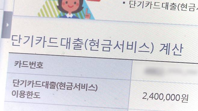 카드론을 갚지 못해 카드론을 빌린 카드사에 다시 대출받는 대환대출 잔액은 1조3천762억원으로 2월 말(1조6천843억원)보다 줄었고, 현금서비스 잔액도 6조7천104억원으로 전월(6조7천440억원)보다 소폭 줄었습니다.