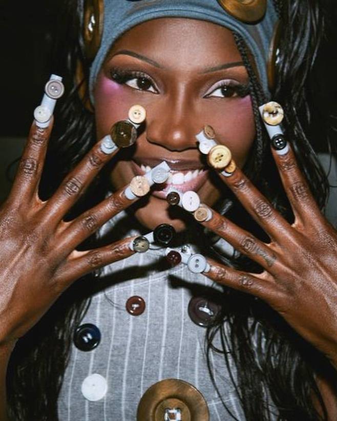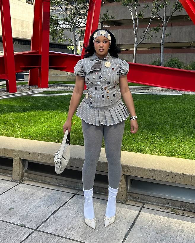 그리고 도이치는 그 옷을 무대 위에서 실제로 착용했습니다. 레깅스를 벗고, 미니 스커트와 니삭스의 조합으로 자신만의 스타일로 완벽하게 소화해냈죠. 여기에 옷과 어울리는 큼지막한 단추들이 가득한 네일까지 더해 완벽한 무대 의상이 완성됐습니다. 팬의 애정이 고스란히 담긴 룩답게, 이 스타일링은 다른 팬들로 하여금 뜨거운 반응을 받았죠.