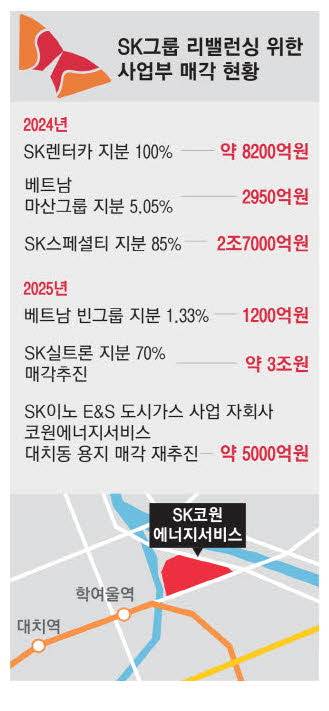 SK이노베이션 E&S가 수도권 도시가스 사업 자회사인 코원에너지서비스의 서울 대치동 본사 용지 매각에 속도를 내는 것은 SK그룹 차원의 리밸런싱(사업재편) 일환이다.