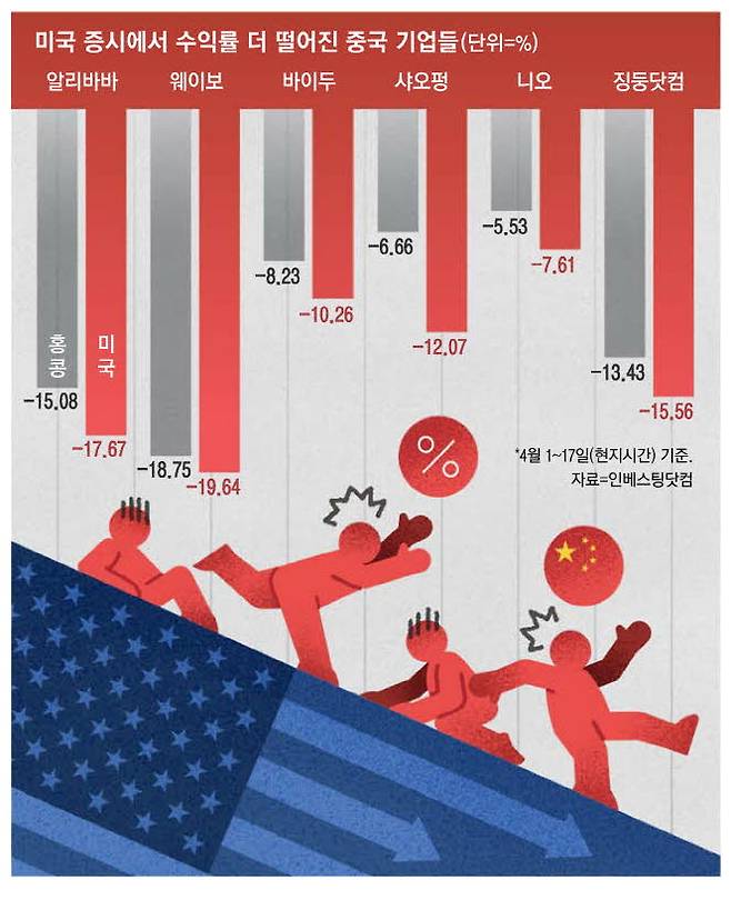 미국 증시 변동성이 커지면서 시장 자체에 대한 신뢰도가 떨어진 데다 정부 차원의 상장폐지 압박까지 들어오면서 불안 심리가 더 심하게 작용하는 것으로 해석된다.