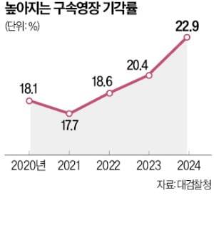 18일 대검찰청에 따르면 지난해 검찰(경찰이 신청한 청구 포함)이 청구한 구속영장 중 법원에서 기각된 비율은 22.9%(6401명)로 2011년(23.1%·8970명) 후 13년 만에 가장 높았다. 구속영장 기각 비율은 2013년부터 줄곧 10%대 후반에 머물다가 2023년(20.4%) 20%를 넘겼다. 윤 정부가 출범한 2022년부터 꾸준히 상승세를 보였다.