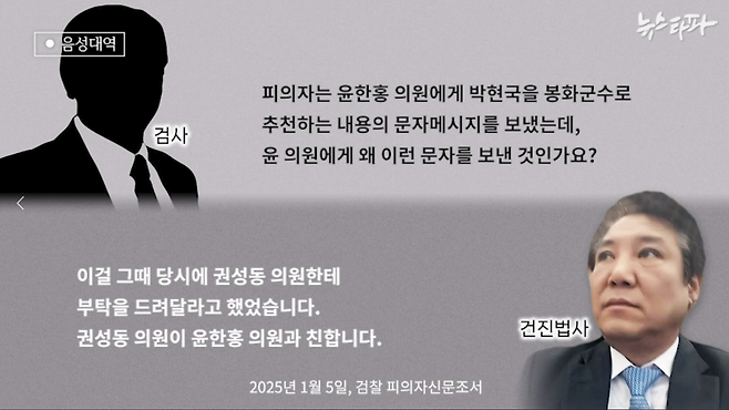 ●건진법사 : 권성동한테 전달해달라는 취지입니다.