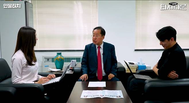 국민의힘 유력 대권주자인 홍준표 예비후보는 18일 공개된 머니투데이 공식유튜브 채널M의 정치시사콘텐츠 '터치다운 더300(the300)'에 출연해 '홍 후보와 이준석 의원의 케미가 좋다는 평이 있는데 나중에 연대 가능성이 있는가'란 질문에 "그건 지금 이야기하지 말자"며 이같이 답했다.