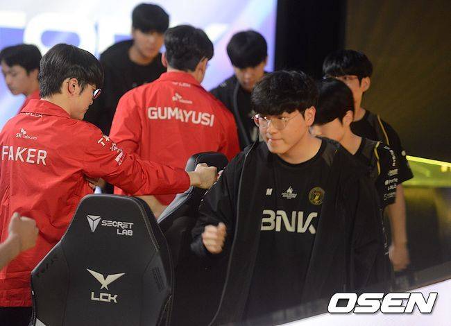 [OSEN=종로, 고용준 기자] 여우군단 피어엑스의 모래 폭풍에 T1이 무너졌다. 피어엑스는 전력 상의 열세라는 예측을 보기 좋게 뒤집고 ‘패승승’ 업셋 드라마로 짜릿한 승전보를 전했다. T1은 ‘스매시’ 신금재와 ‘구마유시’ 이민형 등 주전 경쟁을 벌이는 두 명의 원딜을 모두 투입했음에도 패배로 고개를 숙였다.