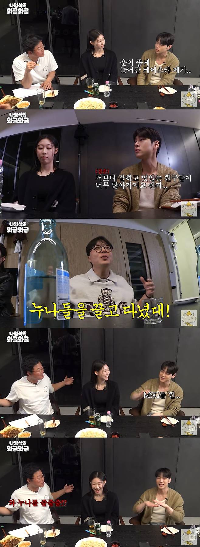 이를 들은 나영석이 "와 누나를 줄줄줄"이라며 감탄하자, 강유석은 "제가 형, 누나들을 좋아해서 엄청 쫓아다녔다. 형, 누나들한테 잘하고 부르면 항상 (나가고)"라고 해명했다.