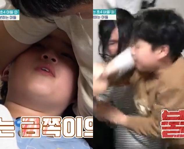 노트북을 뺏으려는 아빠에게 반항하던 금쪽이는 아빠에게도 폭력성을 보였고, 아빠의 머리채를 잡고 우유를 던지는 등의 행동에 엄마가 합세해 금쪽이를 제지했다.