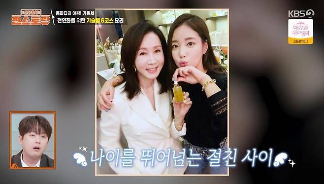 다이어트 중이라는 기은세는 "다이어트 때문에 고민돼서 한의원에 갔다가, 저탄고지 식단을 제안받았다. 탄수화물 빼고는 다 먹어도 된다고 하셔서 다이어트의 신세계가 열렸다"라며 미모의 비결을 전했다.