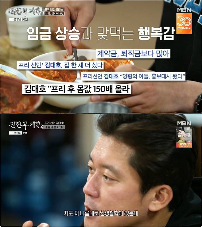 전현무는 "'나혼산'에서 좋은 모습 보여줬지만 내가 걱정될 정도로 결혼을 가장 늦게 할 거 같다"라 했고 김대호는 "제가 마지막으로 소개팅을 했다. 애프터 신청을 했다. '다음에 한 번 더 뵙고 싶다' 했는데 독감에 걸렸다더라. 그런 분들은 독감이 안낫는다. 낫기를 바라고 있다. 7년째 기다리고 있다"라고 했다.