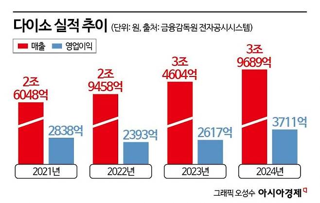 다이소 측은 "작년 매출은 고물가 속에 가성비(가격 대비 성능) 높은 제품에 대한 수요 증가, 시즌·시리즈 등 전략 상품이 인기를 얻어 증가세를 보였다"며 "영업이익은 매출 증가와 규모의 경제를 통한 매출 원가 감소 등으로 늘었다"고 설명했다.