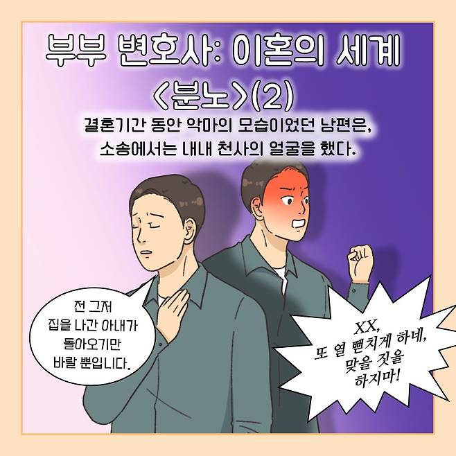 (※이 기사는 이혼 소송 과정에서 필요한 법률 지식을 웹툰 형식으로 이해하기 쉽게 제공할 목적으로 제작됐습니다. 실제 사례를 각색한 내용으로 언급되는 이름과 지명 등이 실제와 같은 경우가 있더라도 이는 우연에 의한 것임을 밝힙니다.)