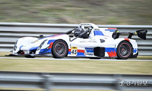 19일 오전 용인특례시 에버랜드 스피드웨이에서 열린 '2025 오네 슈퍼레이스 챔피언십'에서 래디컬 컵 코리아에 출전한 엄재웅(차량45)이 빠른 속도로 질주하고 있다.