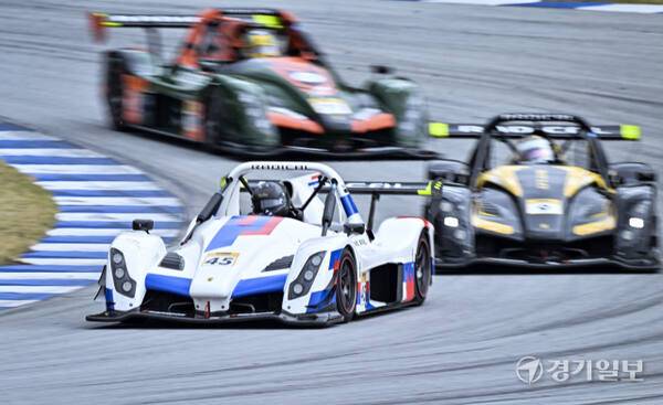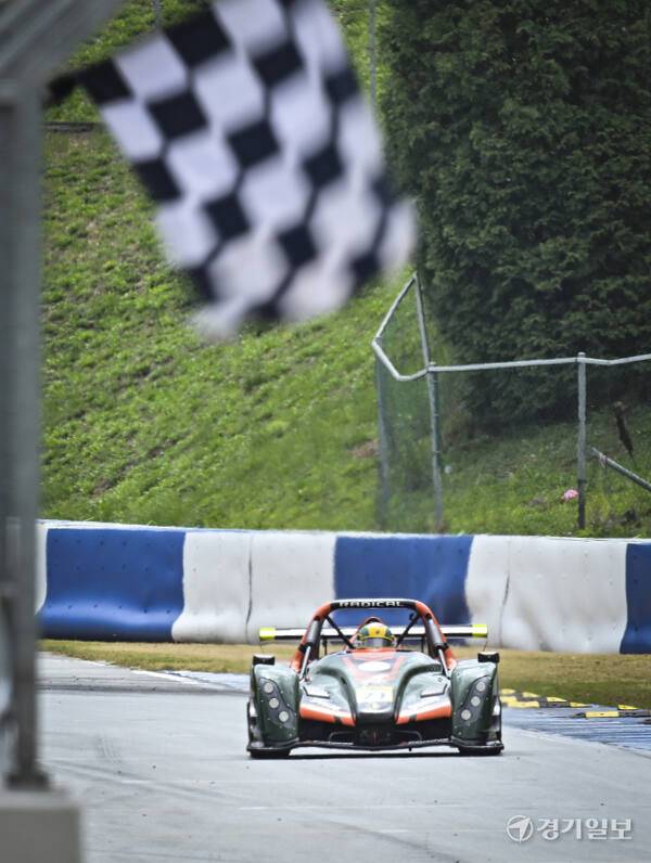 19일 오전 용인특례시 에버랜드 스피드웨이에서 열린 '2025 오네 슈퍼레이스 챔피언십'에서 래디컬 컵 코리아에 출전한 김상호(차량71)가 체커기를 받으며 2위로 결승점에 들어서고 있다.