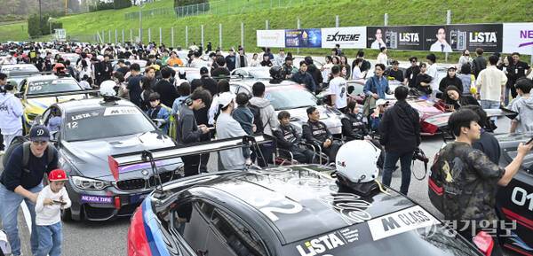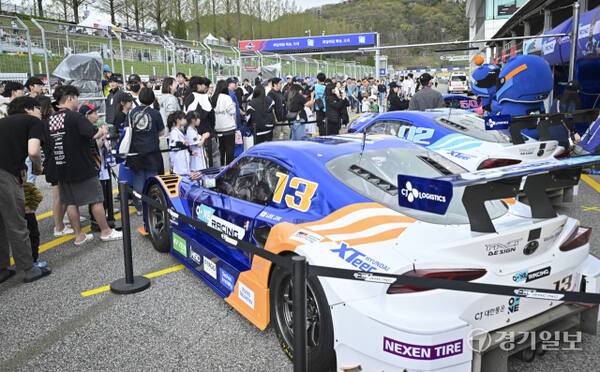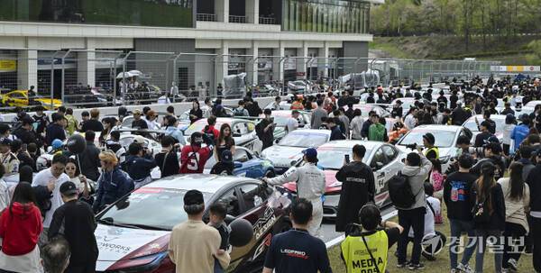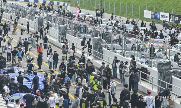19일 오후 용인특례시 에버랜드 스피드웨이에서 열린 '2025 오네 슈퍼레이스 챔피언십'에서 그리드&피트 워크 타임에 관중들이 직접 레이스 서킷을 걸으며 대회 차량을 관람하고 있다.