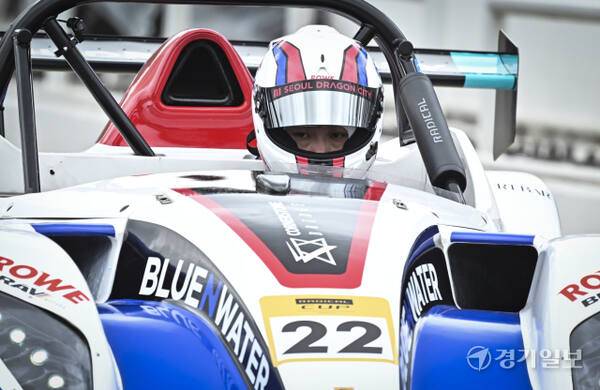 19일 오전 용인특례시 에버랜드 스피드웨이에서 열린 '2025 오네 슈퍼레이스 챔피언십'에서 래디컬 컵 코리아에 출전한 쥴리안(차량22)이 경기 시작전 헬멧 사이로 긴장된 모습을 보이고 있다.