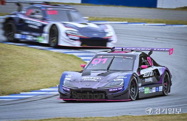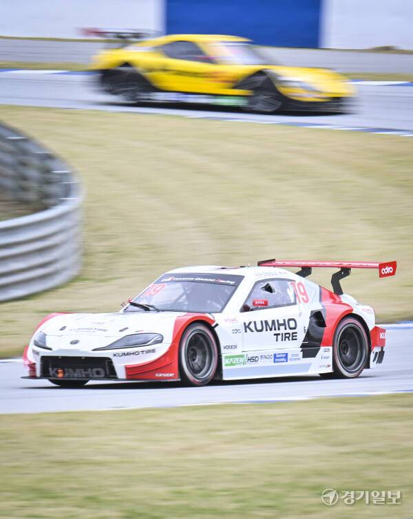 19일 오후 용인특례시 에버랜드 스피드웨이에서 열린 '2025 오네 슈퍼레이스 챔피언십'에서 토요타 가주 레이싱 6000 클래스에 출전한 선수들이 질주를 하고 있다.