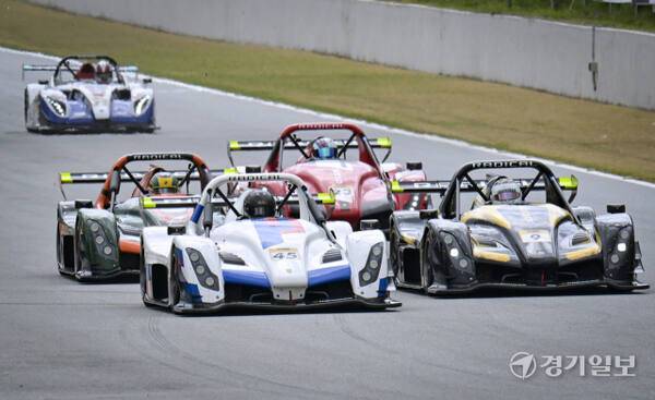 19일 오전 용인특례시 에버랜드 스피드웨이에서 열린 '2025 오네 슈퍼레이스 챔피언십'에서 래디컬 컵 코리아에 출전한 선수들이 출발 스타트에서 서로 엉키며 질주하고 있다.