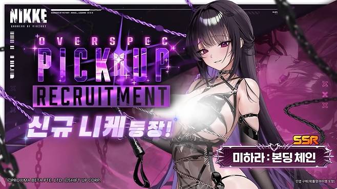 먼저, 신규 니케로 아군의 공격력을 올려주는 '리틀 머메이드', 포획 사슬을 통해 지속 공격하는 '미하라: 본딩 체인', 보호막으로 아군을 보호하는 '모리'가 추가된다.