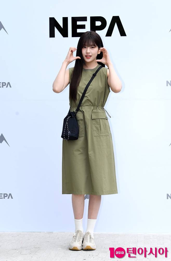 그룹 아이브 멤버 안유진이 19일 서울 서초구 네파 플래그십 스토어에서 열린 오픈행사에 참석해 포즈를 취하고 있다.