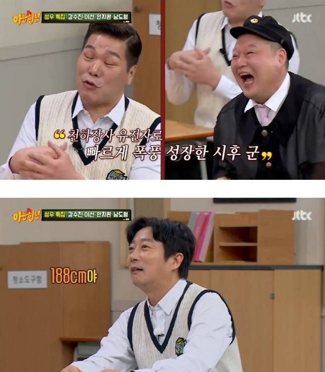 실제로 강호동이 183cm라서 16살 시후가 천하장사 아빠를 5cm 이상 압도한 신장인 것. 아직 16살이기에 더 클 가능성도 높다.