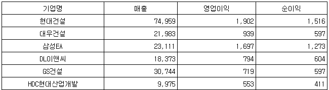 반면 일부 건설사는 1분기 30% 이상의 영업이익 증가가 기대된다.