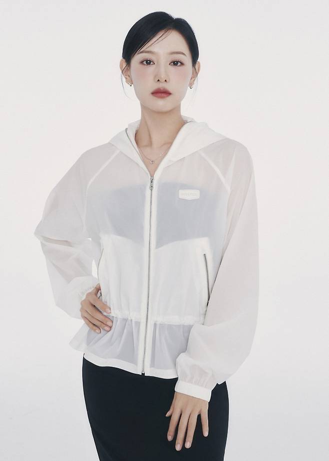 화보 속 김지원은 간절기 바람을 막아줄 경량 바람막이 ‘알테아 N’을 착용하고 등장한다.