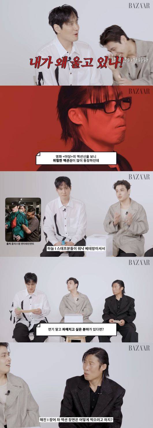 지난 18일 유튜브를 통해 공개된 패션잡지사 하퍼스 바자의 'B대면 인터뷰'에서는 영화 '야당'(감독 황병국, 제공/배급 플러스엠 엔터테인먼트, 제작 하이브미디어코프)의 주역 강하늘, 유해진, 박해준의 화보 촬영 후 인터뷰가 담겨 이목을 끌었다.