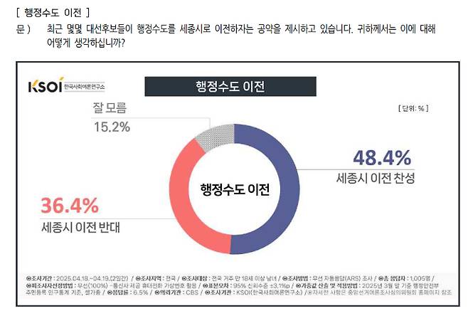 행정수도 세종시 이전 찬성 48.4%·반대 36.4%