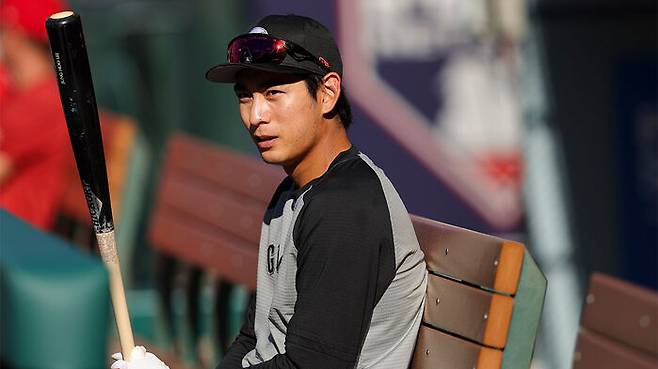 ▲ 샌프란시스코 자이언츠 외야수 이정후가 20일(한국시간) 미국 캘리포니아주 애너하임 에인절스타디움에서 열린 로스앤젤레스 에인절스와 방문 경기를 앞두고 그라운드를 바라보고 있다.