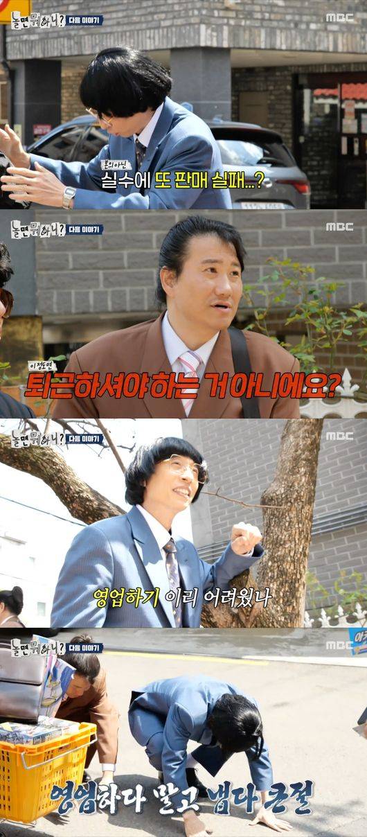 그러나 '영업'은 쉽지 않았다. 유재석은 처음 등장한 여성 시민들에게 "날씨가 참 좋죠?"라고 어색하게 말을 걸더니 "그러면 잘 다녀오세요"라며 영업에 실패했다.