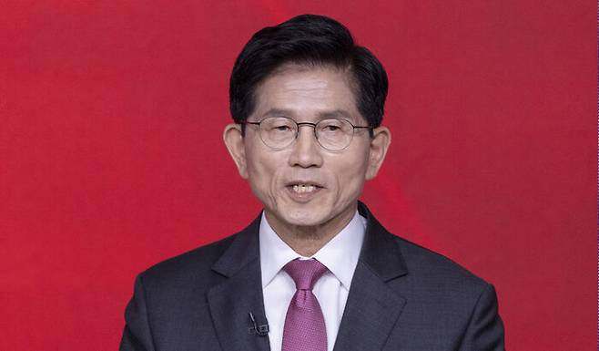 ▲ 19일 서울 강서구 ASSA아트홀에서 열린 국민의힘 제21대 대통령 후보자 1차 경선 토론회에서 A조 김문수 후보가 발언하고 있다.