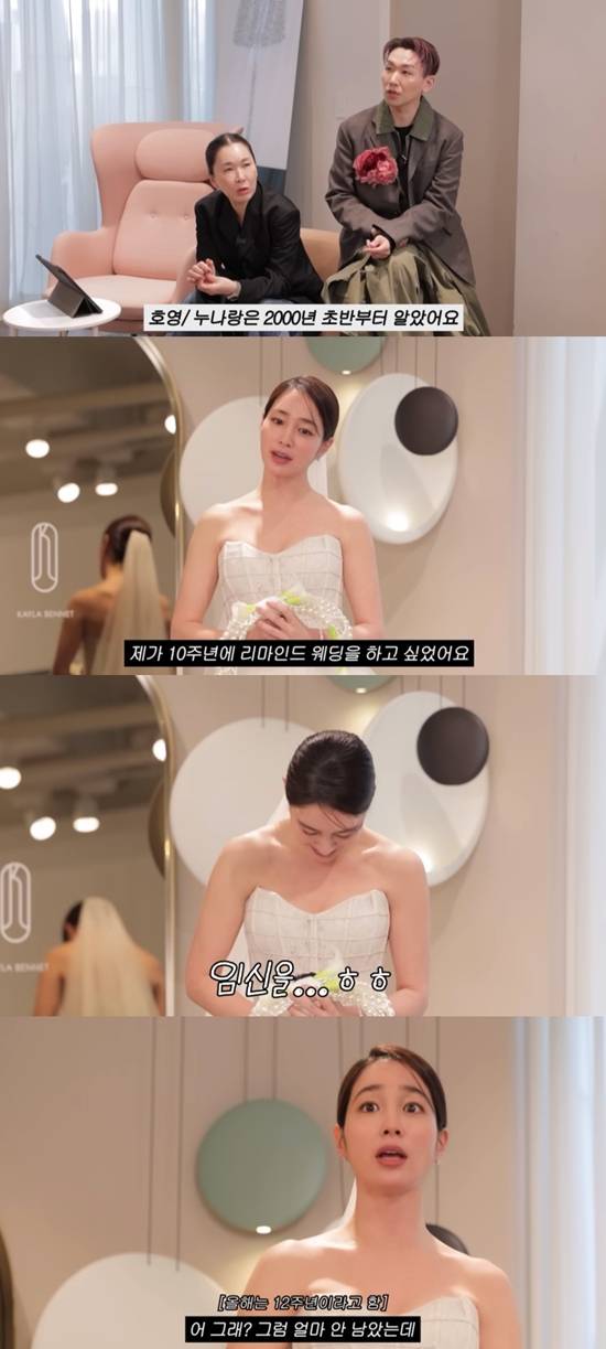 여전한 미모로 순백의 웨딩드레스 자태를 뽐낸 이민정은 "10주년에 리마인드 웨딩을 하고 싶었다. 근데 10주년 때 제가 임신을"이라며 머쓱한 듯 웃었다. 그러면서 "대신 고기를 먹었다"고 덧붙였다.