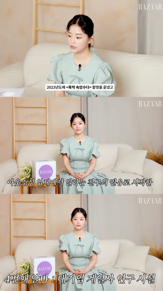 19일 유튜브 채널 '하퍼스 바자 코리아'에는 '알바만 7개 했다는 알바몬 채서안과 그녀의 충격적인 이상형에 대하여 폭싹속았수다 학씨부인의 #비대면인터뷰'라는 제목으로 새 영상이 공개됐다.