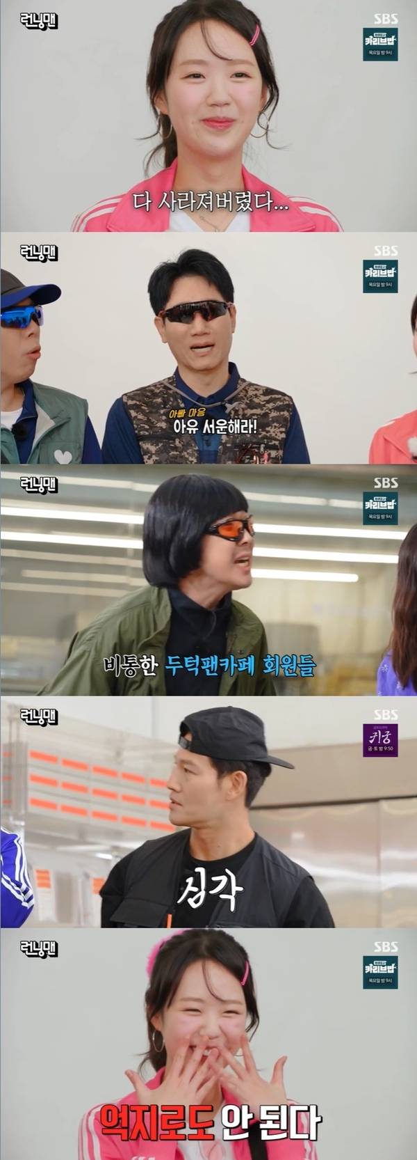 핑크색으로 단장한 지예은을 본 ‘런닝맨’ 멤버들은 “오늘 설정상 너무 예쁘게 하고 다니면 안 된다”고 언급했다.